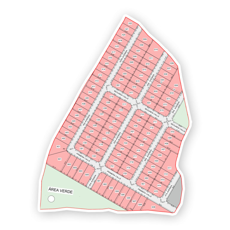 Nuestro masterplan refleja la visión completa del proyecto: una urbanización planificada con 121 lotes estratégicamente distribuidos, amplias vías de acceso, áreas verdes y una infraestructura lista para construir. Cada sector fue diseñado para brindar comodidad, accesibilidad y una excelente armonía entre los espacios, creando un entorno ideal para vivir o invertir. Aquí podés visualizar cómo se organiza el proyecto y elegir la ubicación perfecta para tu futuro lote o vivienda.